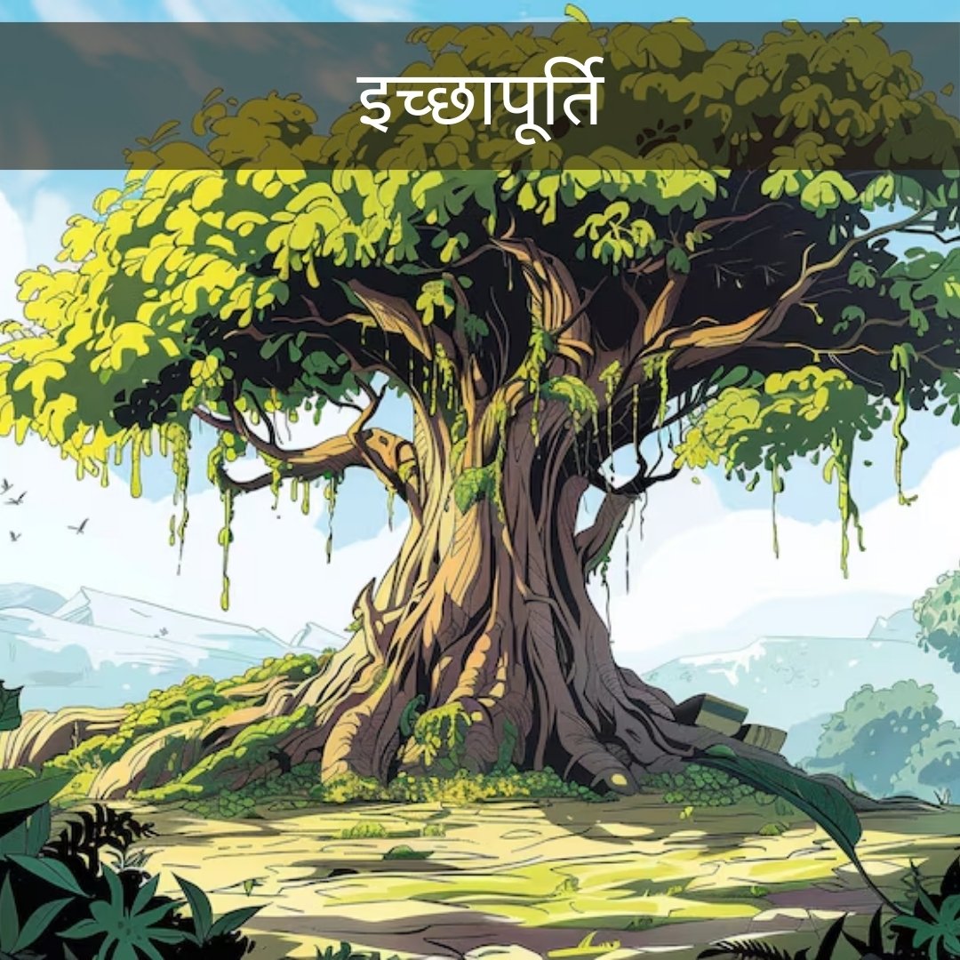 एक घने जंगल में एक इच्छा पूर्ति वृक्ष था, उसके नीचे बैठ कर कोई भी इच्छा करने से वह तुरंत पूरी हो जाती थी। यह बात बहुत कम लोग जानते थे क्योंकि उस घने जंगल में जाने की कोई हिम्मत ही नहीं करता था।